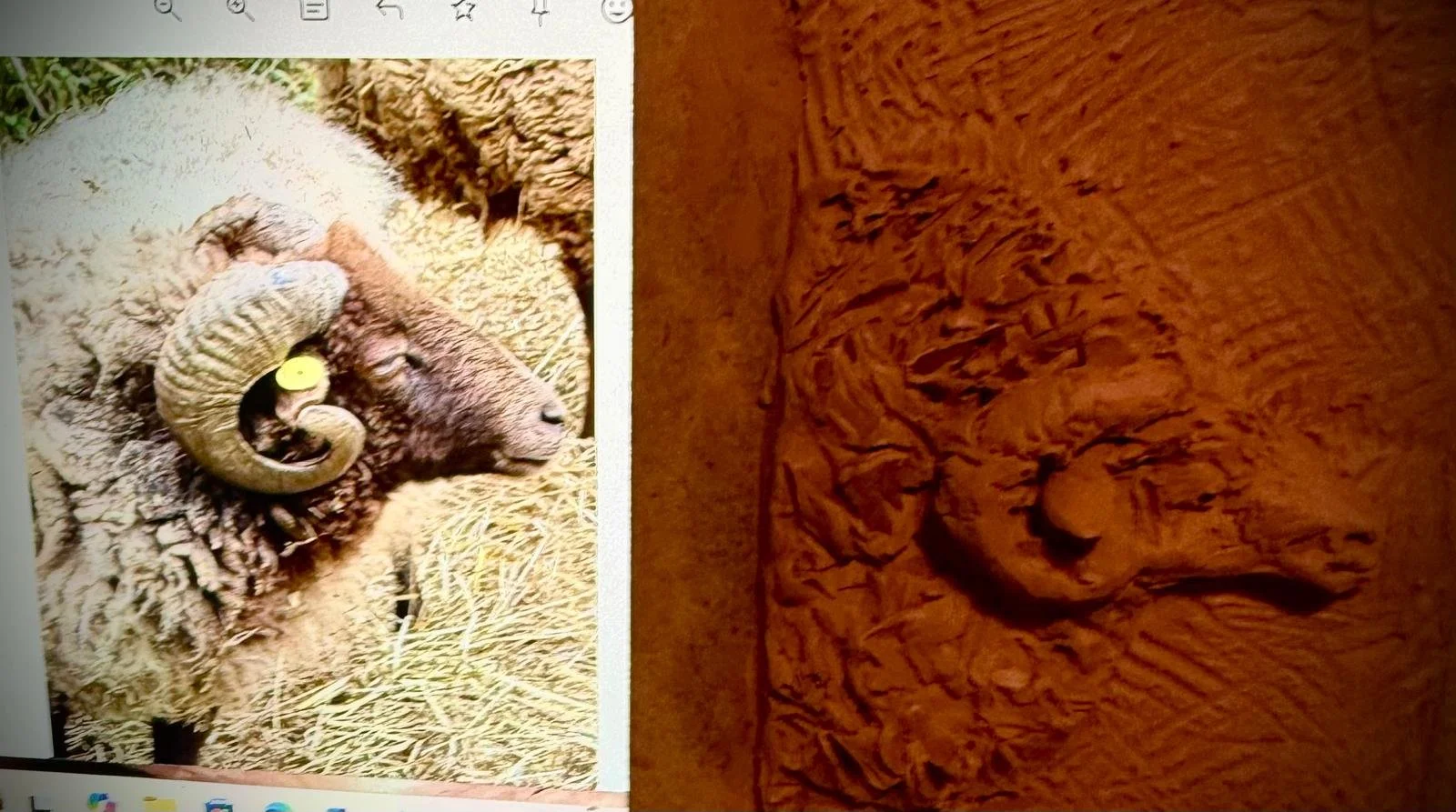 I laid out and sculpted this one hour relief in the beautiful town of Valdicastello Carducci while attending a marble workshop. They have sheep on the property that roam among the sculptors!